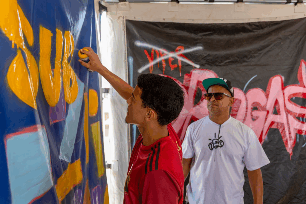 No sábado (26), o grafite ganhou espaço com a oficina Letras e Cores, conduzida pelo artista Gilmar Satão. Cerca de 30 pessoas participaram. “O grafite é resistência, linguagem e transformação. É gratificante ver jovens colocando seus sentimentos no muro pela primeira vez”, afirmou Satão. Para Daniel Gonçalves, 17 anos, a experiência foi marcante: “Nunca tinha usado spray. Aprendi a desenhar letras e até falei de mim. Quero continuar.”