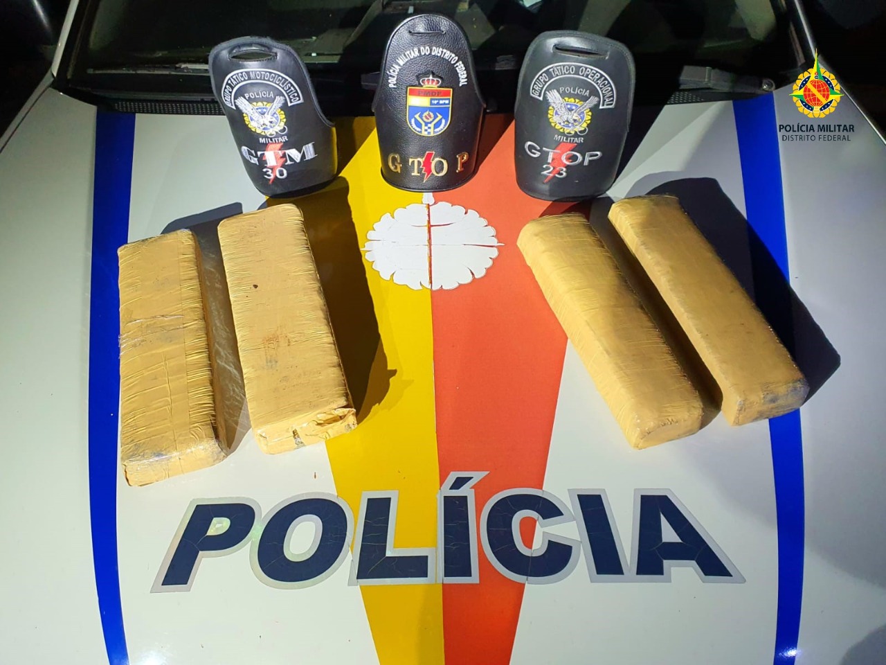 Na sacola, estavam quatro grandes tabletes de maconha que totalizaram mais de 4kg de maconha. O detido e o entorpecentes foram levados à 29ª Delegacia para registro da ocorrência.