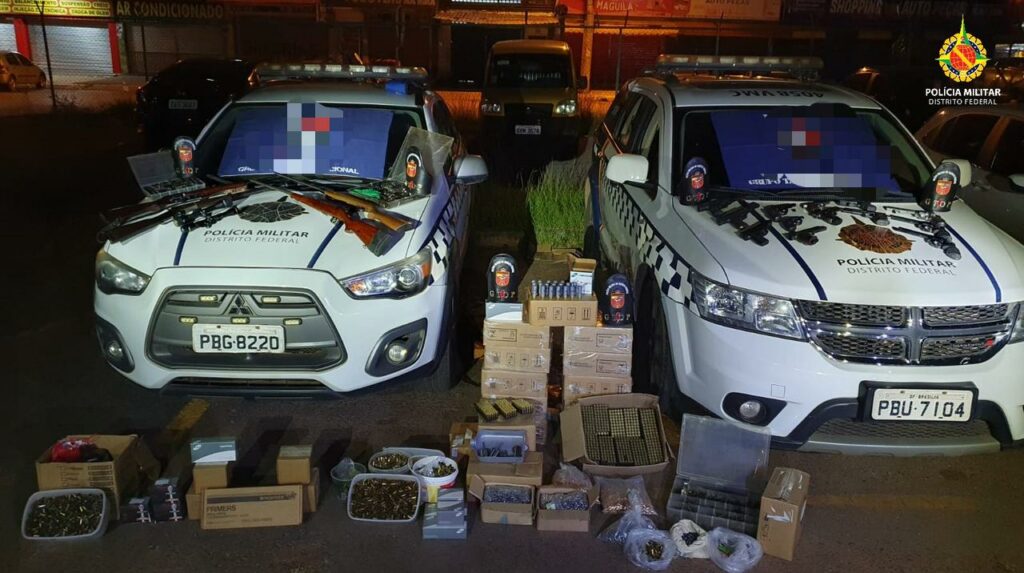 Um verdadeiro arsenal foi apreendido por policiais militares do Grupo Tático Operacional do 2º Batalhão (Gtop 22) em Taguatinga na noite desta quarta-feira (8). Foram apreendidas 13 armas de fogo e milhares de munições de diversos calibres. Na ação, dois homens foram detidos.