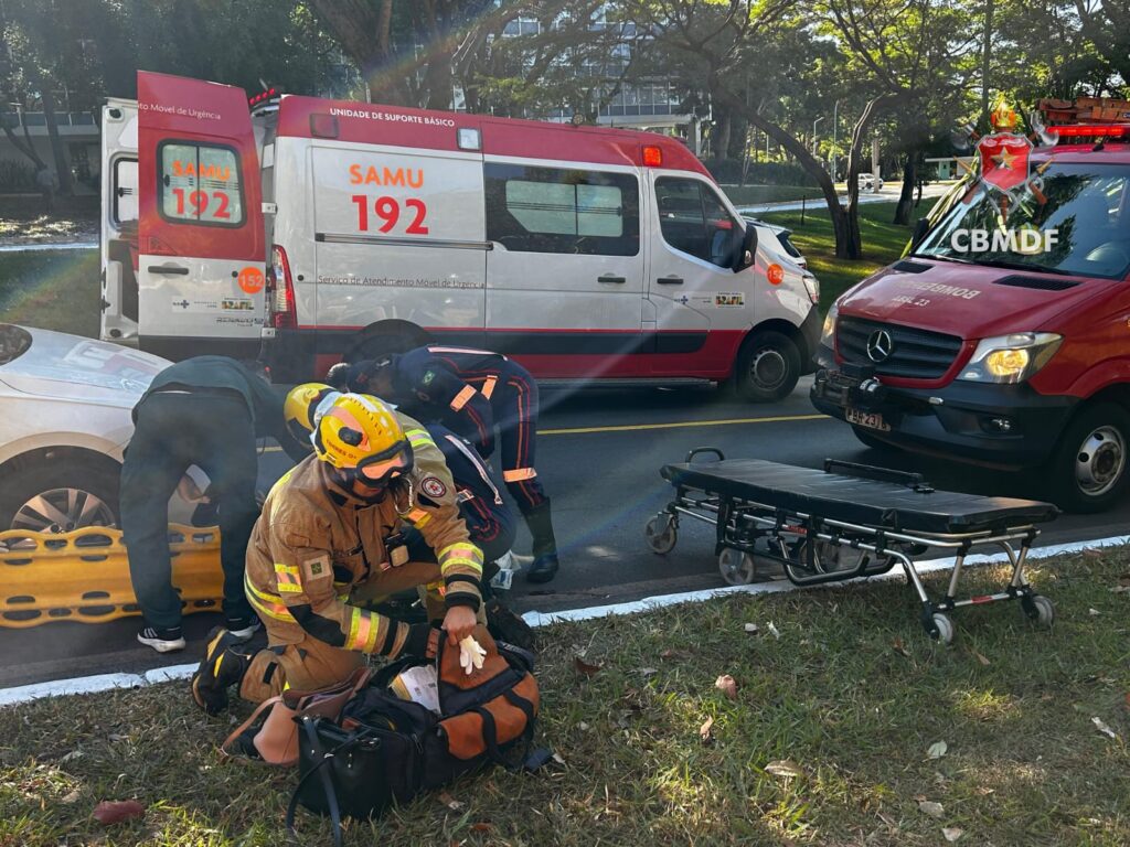 Nas imagens divulgadas pelo Corpo de Bombeiros Militar do Distrito Federal (CBMDF), mostra um pouco do processo de atendimento da vítima. Ele estava sendo imobilizado pelos bombeiros. Confira abaixo:
