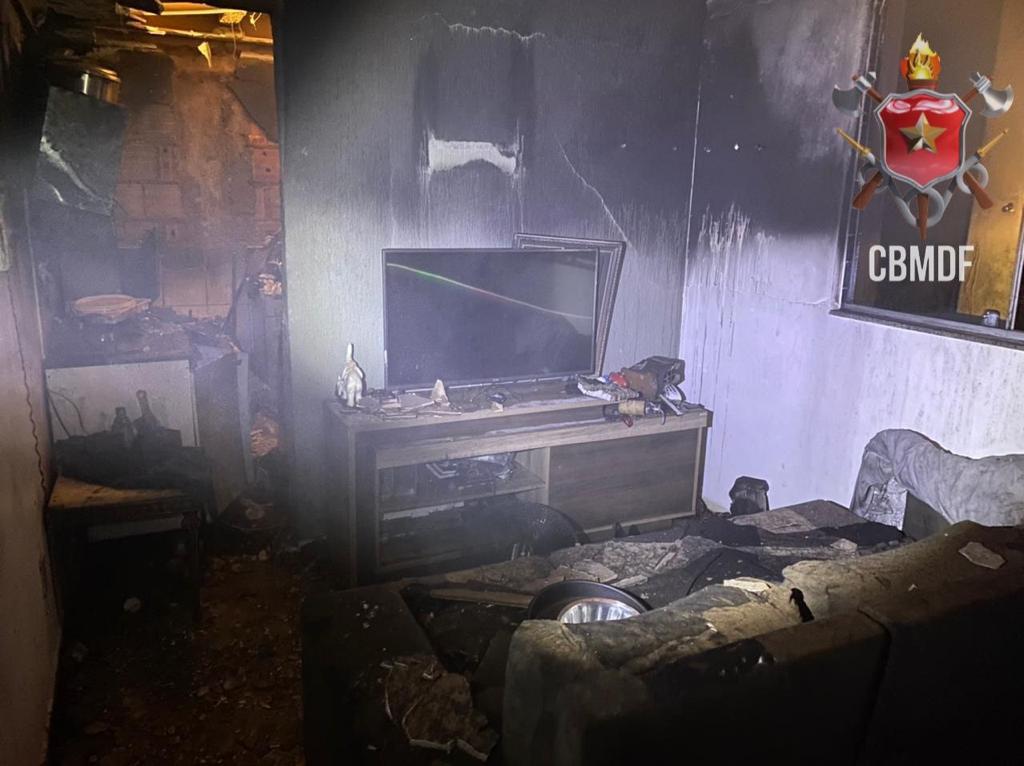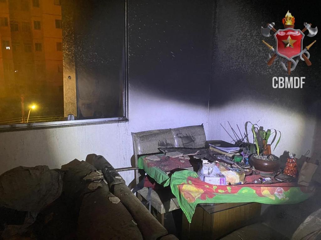 Um apartamento na CLN 3 Bloco B, próximo ao Supermercado Super Bom no Riacho Fundo, pegou fogo na madrugada desta segunda-feira (7).