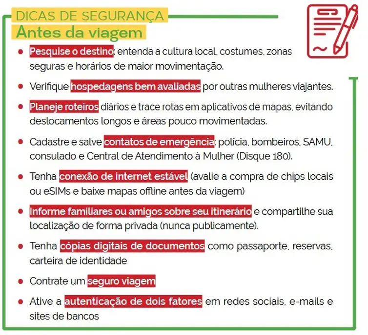 Segundo a pesquisa Mulheres que Viajam Sozinhas, concluída em agosto de 2025, 62% das entrevistadas afirmaram já ter deixado de viajar sozinhas por questões de segurança. E 61% disseram já ter vivido alguma situação que as fizeram se sentir inseguras durante uma viagem desacompanhada.