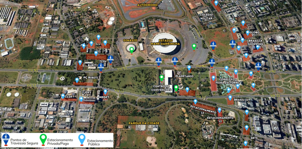 O Detran-DF recomenda aos condutores a utilizarem as áreas de estacionamento disponíveis na Arena BRB Mané Garrincha, Parque da Cidade, Clube do Choro, anexo do Palácio do Buriti, Setor Hoteleiro Norte (SHN) e Setor de Rádio e TV Norte (SRTVN). Para as ações de segurança viária durante o evento, o Detran-DF contará com um efetivo de 150 agentes de trânsito, 45 viaturas, oito motocicletas, cinco guinchos e uma aeronave.