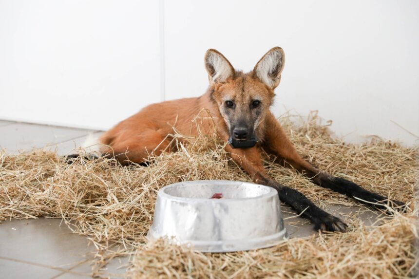Lobo-guará fêmea é devolvida à natureza após passar por tratamento no Hospital da Fauna Silvestre do DF