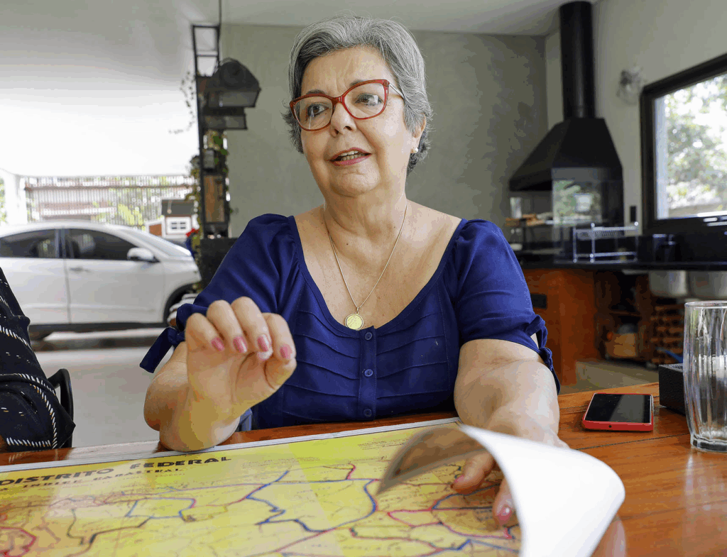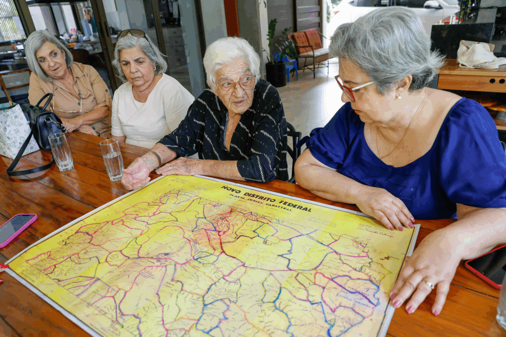 “Ela ajudou meu pai no mapa de desapropriação das terras. Ele fez o primeiro mapa do DF. Ela usava um planímetro para medir as áreas e eu ajudava colorindo o mapa. Ela me dava as cores e eu pintava as regiões: Taguatinga, Gama, Sobradinho… Está tudo nesse mapa. Tem Vicente Pires, Guariroba, Papuda, Pipiripau, Bananal… até hoje lembro dos nomes. E só 60 anos depois, é que o professor Elias Manoel da Silva, do Arquivo Público do DF, conseguiu provar que o mapa era mesmo do nosso pai”.