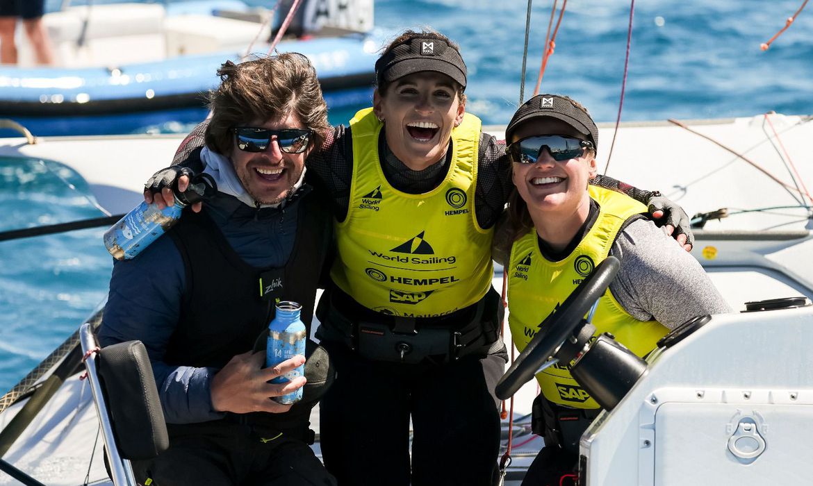As brasileiras ocupavam a sétima posição após as seis primeiras disputas, tendo um segundo lugar como melhor resultado, na quinta etapa. Nas seis provas seguintes, foram duas vitórias e presença contínua no top-10, assumindo a liderança geral. Elas chegaram à regata deste sábado (também chamada “regata da medalha”, com pontuação dobrada) podendo ser campeãs até se terminassem em sexto, mas asseguraram o título com mais um triunfo.