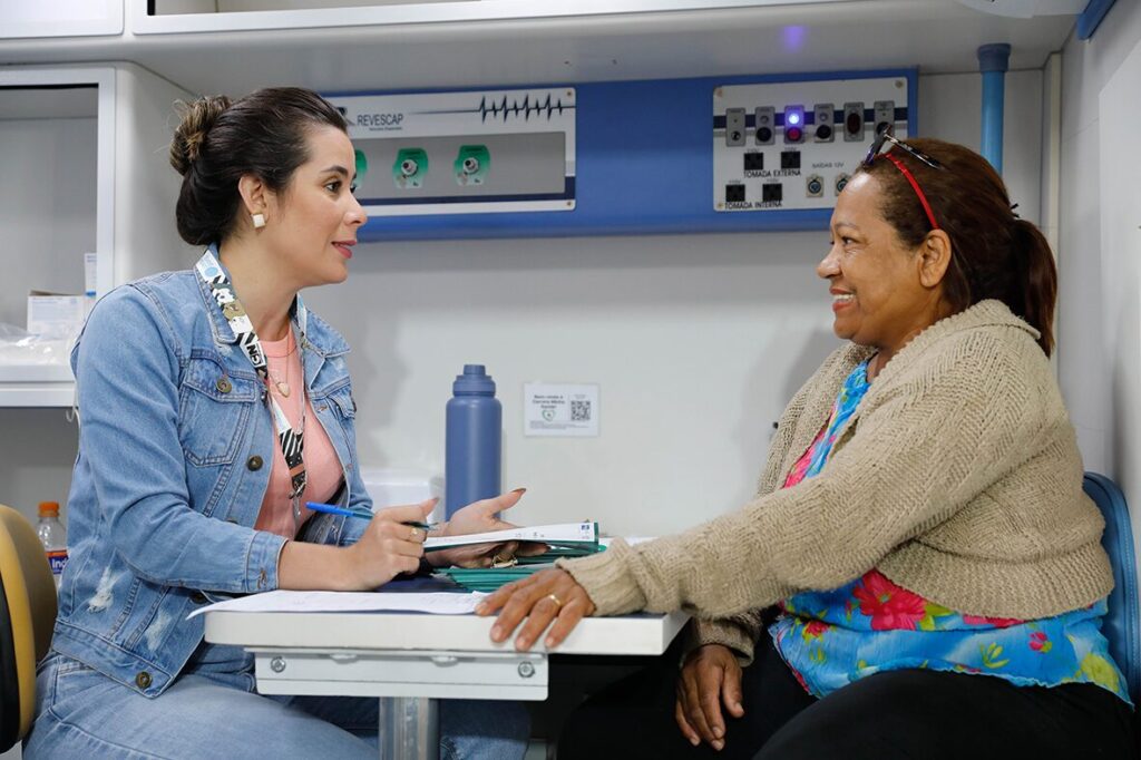 A estrutura está montada no estacionamento do ginásio poliesportivo, na QC 01, ao lado do Restaurante Comunitário. No local, a população pode acessar serviços de clínica médica, ginecologia, cardiologia e mais, além de exames como mamografia e ultrassonografia, com senhas distribuídas a partir das 6h30.