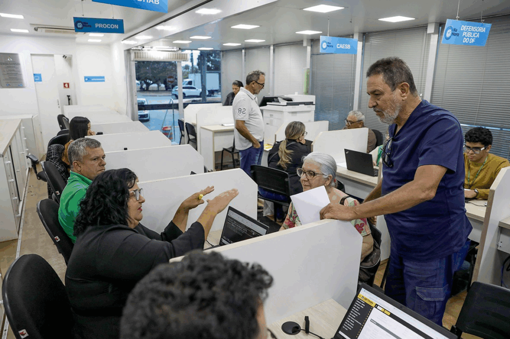 Já no Instituto Nacional do Seguro Social (INSS), o contribuinte pode tratar de assuntos de aposentadoria, auxílios, benefícios assistenciais e pensões, entre outros serviços. Na Defensoria Pública, aqueles em situação de vulnerabilidade econômica, social ou jurídica têm assegurado o acesso à Justiça. Os cidadãos também podem pagar a conta de água, verificar a situação de débitos junto à Companhia de Saneamento Ambiental (Caesb) ou mesmo solicitar a troca de titularidade da conta.