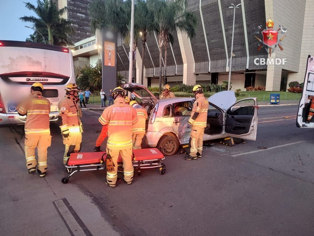 Uma pessoa ficou ferida, na manhã desta terça-feira (18), após acidente entre um carro e um ônibus. O caso aconteceu em um cruzamento da W3 Sul, na altura da quadra 701. Segundo o Corpo de Bombeiros Militar do Distrito Federal (CBMDF), no momento do atendimento, a vítima ainda estava no carro com fortes dores no ombro e peito.