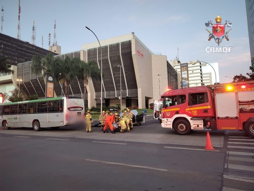 Uma pessoa ficou ferida, na manhã desta terça-feira (18), após acidente entre um carro e um ônibus. O caso aconteceu em um cruzamento da W3 Sul, na altura da quadra 701. Segundo o Corpo de Bombeiros Militar do Distrito Federal (CBMDF), no momento do atendimento, a vítima ainda estava no carro com fortes dores no ombro e peito.