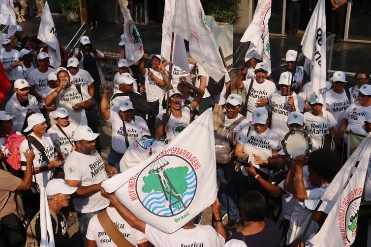 Em Belo Horizonte, os manifestantes se concentraram em frente ao Tribunal Regional Federal da 6ª Região, para lembrar os 9 anos do rompimento da Barragem de Fundão, em Mariana, e cobrar repactuação justa pelo crime socioambiental cometido pela mineradora Samarco (Vale e BHP), com a participação dos atingidos.