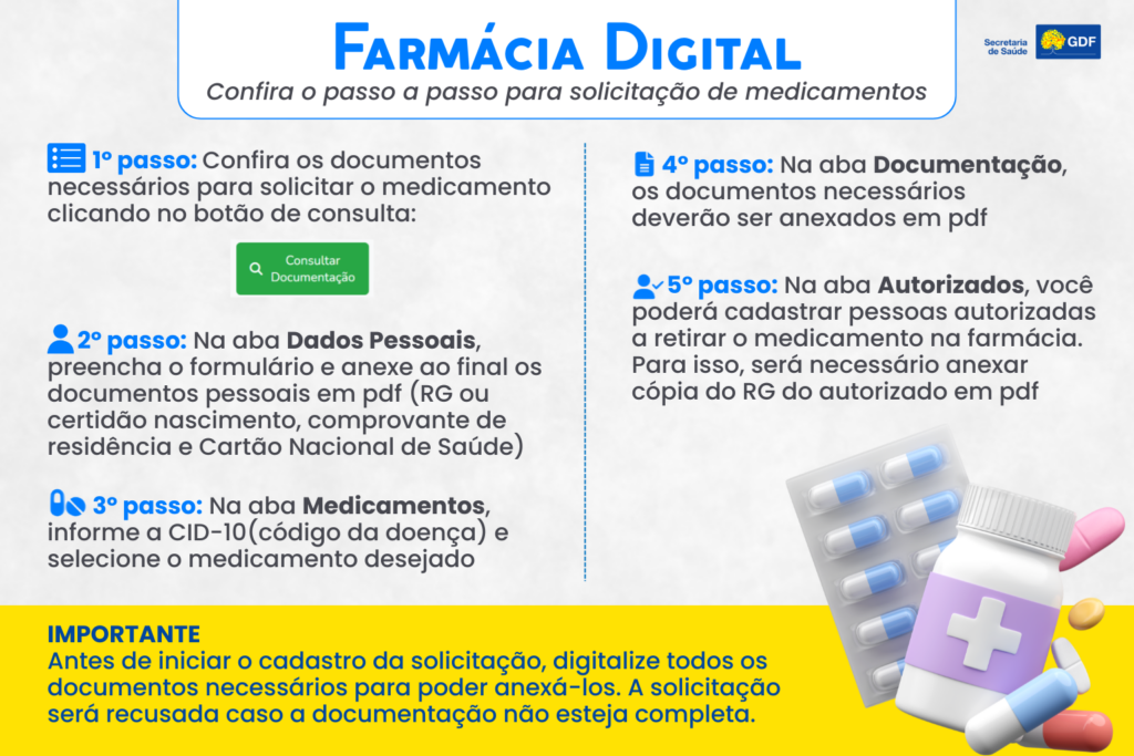 Visando modernizar a assistência farmacêutica no Distrito Federal, a Secretaria de Saúde (SES-DF) lança a Farmácia Digital, sistema de gestão de medicamentos de alto custo. A solução tem o objetivo de tornar a disponibilização de medicamentos mais ágil, organizada e acessível à população. A ferramenta, que utiliza a plataforma Sismedex, deve beneficiar cerca de 50 mil pacientes da rede pública de saúde do DF.
