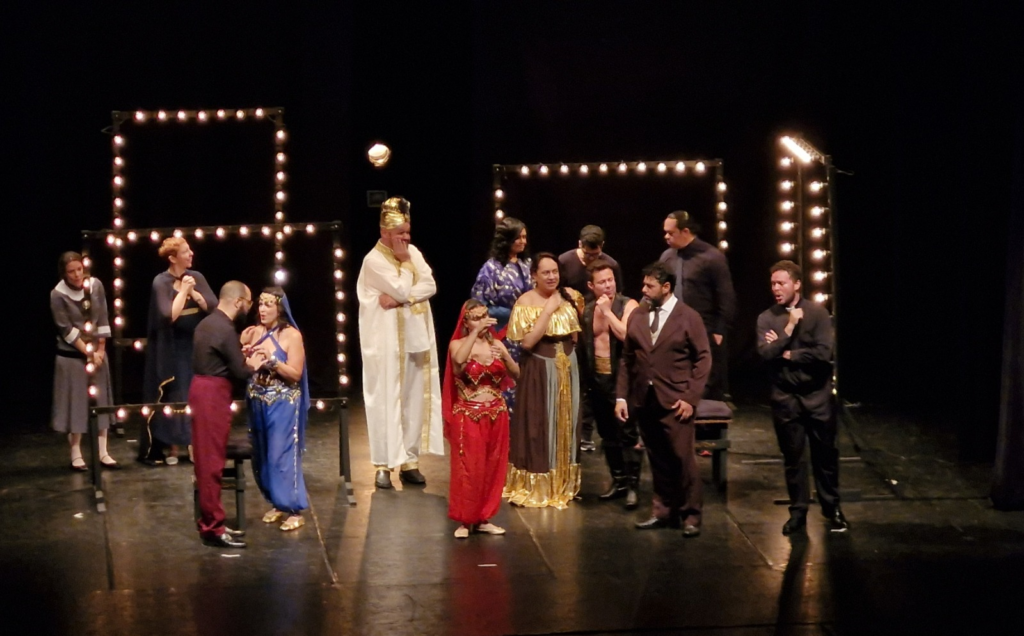 A versão apresentada tem cerca de duas horas de duração e foi adaptada para tornar a experiência mais fluida e acessível ao público contemporâneo. A encenação propõe um diálogo entre épocas ao situar a trama nos anos 1920, com figurinos e cenografia que remetem ao ambiente teatral e aos chamados “anos loucos”. A proposta estética reforça o contraste entre os bastidores da vida artística e os conflitos pessoais dos personagens.