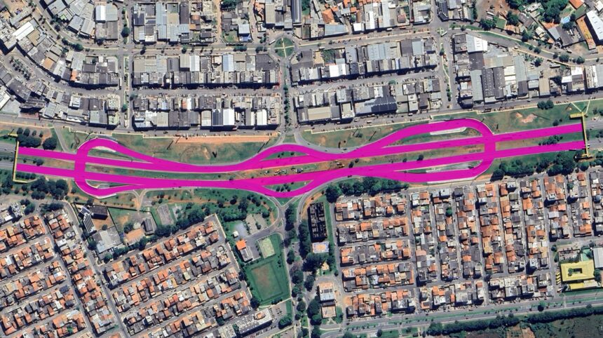 O serviço de melhoria viária asfáltica abrange a rotatória do Riacho Fundo, entre as passarelas e as alças do viaduto que compõem o Complexo Viário Deputado César Lacerda.