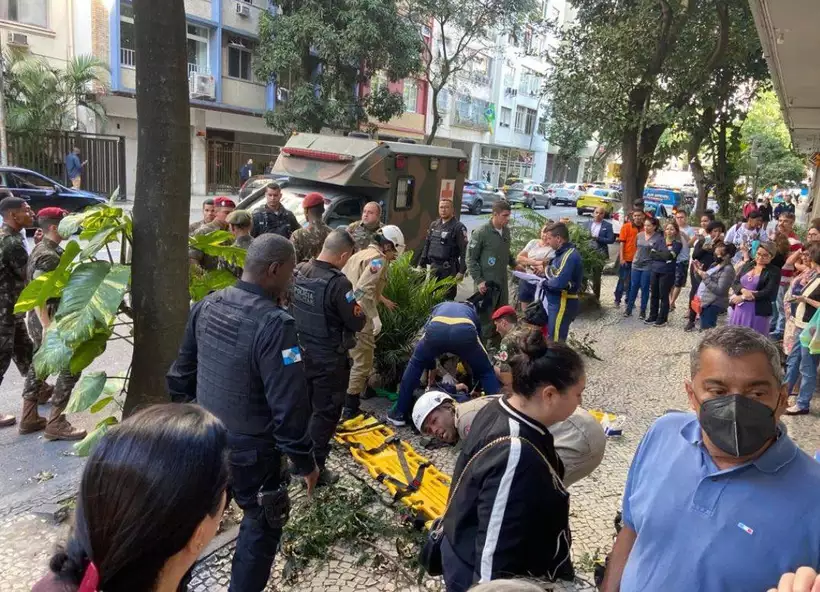 Segundo a Polícia Militar, PMs do 19° Batalhão (Copacabana) foram acionados para checar a informação de que um paraquedista teria saído da rota do seu voo e caído em uma árvore na rua Raul Pompéia. Quando chegaram ao local encontraram uma pessoa ferida caída no chão. Eles acionaram o Corpo de Bombeiros.