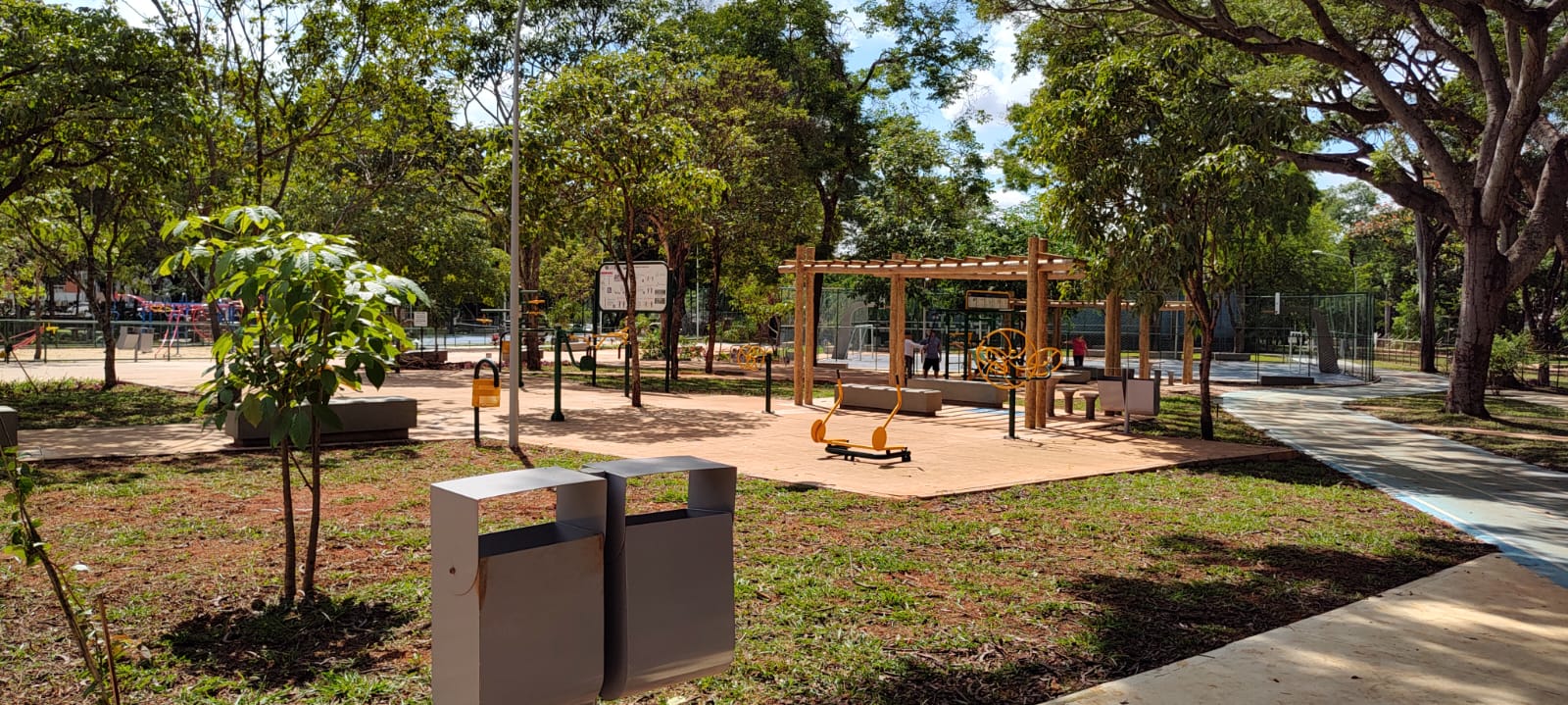O parque, com 14.800 m² de extensão, teve parte da estrutura preservada, como as quadras poliesportivas, que foram renovadas. Novos ambientes foram criados, como a pista de corrida, anfiteatro, bancos, áreas de lazer, pergolados, parquinho infantil, parcão, acessibilidade em toda a extensão do parque, calçadas e paisagismo com mudas de ipês, entre outras espécies do cerrado.