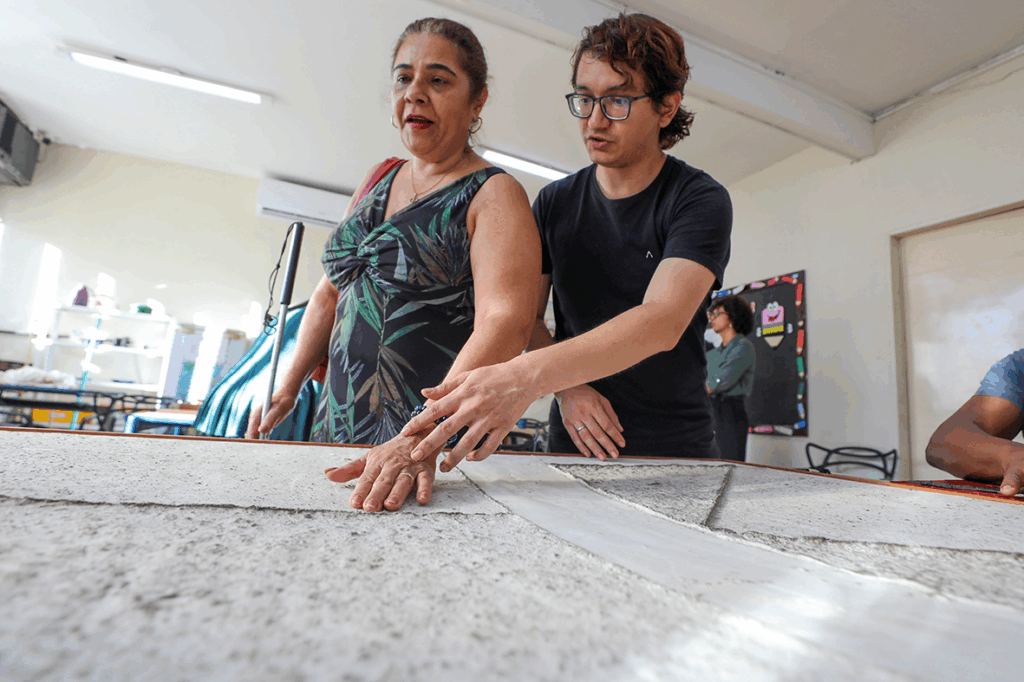 Os participantes também conhecem técnicas táteis e de texturização, além de terem contato com materiais como madeira, cerâmica, tecido, gesso e metais, representando diferentes superfícies e texturas urbanas. “No dia a dia nós sabemos como é, as ruas que andamos, mas tatear foi diferente e divertido”, conta a estudante Maristela Batista, 57 anos. Haverá, ainda, saídas de campo para registros em áudio e georreferenciamento dos caminhos indicados.