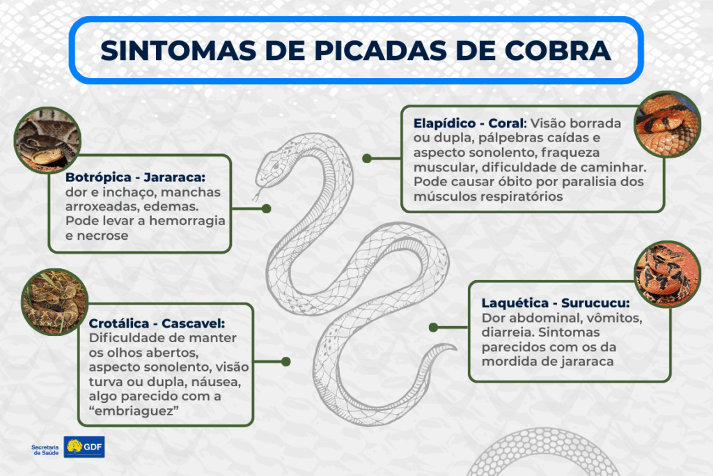 No Centro de Informação e Assistência Toxicológica (Ciatox) do DF, até setembro, foram registrados mais de 230 atendimentos de picadas ou mordidas de cobra. Por meio de ligação telefônica, o serviço da Secretaria de Saúde (SES-DF) oferece as primeiras orientações em relação aos cuidados até que o paciente chegue às unidades de saúde. Em 2024, foram notificados mais de 400 atendimentos pelo serviço; em 2023, foram 260.