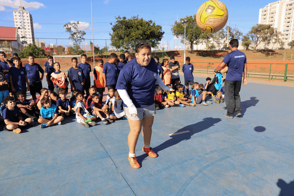 Dia de futebol é sagrado para o estudante Victor Uriel Maciel, 12 anos. Ele é um dos 150 alunos do projeto Formando Cidadãos, desenvolvido há mais de uma década pelo 11º Batalhão de Polícia Militar do Distrito Federal (PMDF), em Samambaia. Em campo, o menino constrói o sonho de ser jogador e, ainda, aprende sobre respeito, disciplina, resiliência e trabalho em equipe.