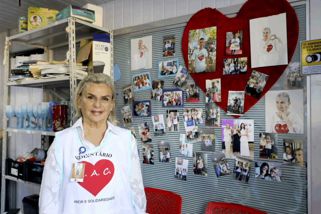 Ela nunca havia pensado em ser voluntária, mas, certo dia, viu um anúncio do MAC em um shopping da cidade e decidiu se juntar à iniciativa: “Meu marido me disse para não entrar no movimento porque isso me faria sofrer: ‘você já passou por isso, vai sofrer demais’. E não sofro nem um pouco. No início, lógico que a gente passa por um processo de reconhecimento, de tudo, mas não sofro nada. Adoro servir”.