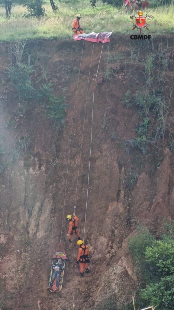 Queda: vítima cai em erosão de 20 metros de profundidade na Capital Federal