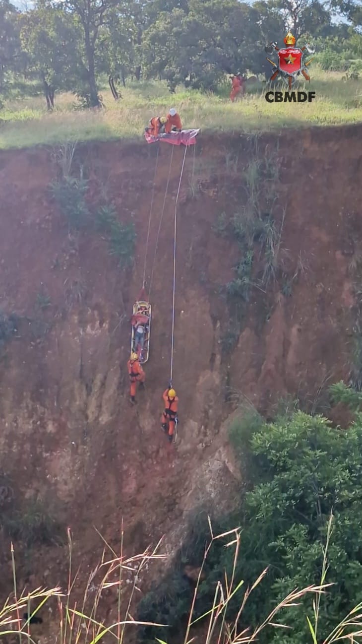 Queda: vítima cai em erosão de 20 metros de profundidade na Capital Federal