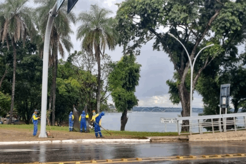 As equipes do GDF Presente executaram serviços de limpeza ambiental nas proximidades da ponte Honestino Guimarães, que dá acesso ao Pontão do Lago Sul. Ao todo, foram retiradas 24 toneladas de entulhos, inservíveis e lixo verde das margens do Lago Paranoá e de bocas de lobo.