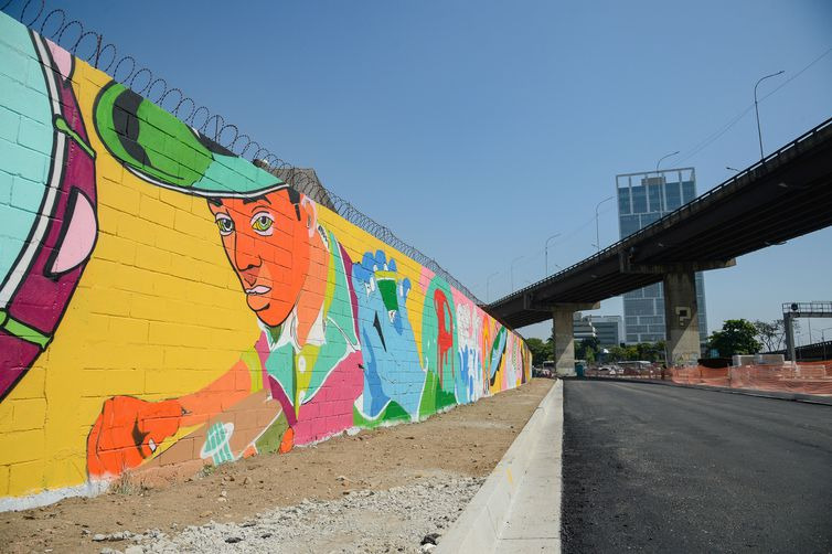 “A ideia é recepcionar os cariocas e o povo que chega pela Avenida Brasil no Rio de Janeiro com as Cores da Brasil, com as cores que representam o nosso povo. E ter essa questão da gentileza urbana. A arte urbana é para todos porque ela está na rua. Queremos democratizar a arte e trazer mais cores para a vida das pessoas”, disse Andre Bretas, produtor cultural responsável pelos grafites.