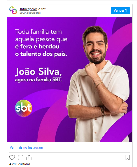 “Ô loco, bicho! Chegou o integrante da família que nasceu com DNA de televisão na veia. João Silva traz todo o seu talento para o palco do SBT. É carisma que conquista, passa de geração para geração e que você não vai querer perder”, dizia mensagem postada pelo canal de Silvio Santos (1930-2024), em tom de bom humor, fazendo referência ao bordão imortalizado por Faustão.