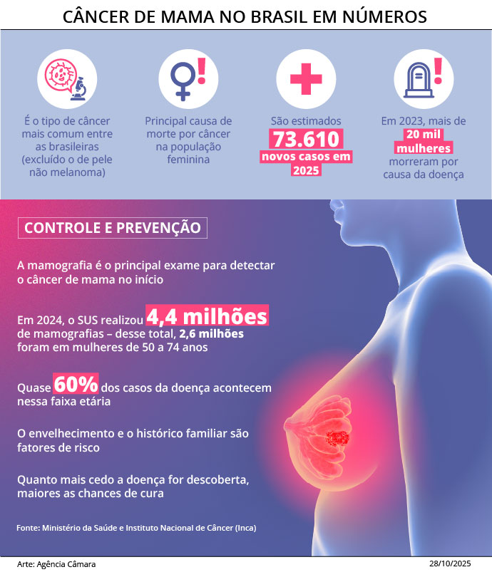 A Comissão de Defesa dos Direitos da Mulher da Câmara dos Deputados promove, nesta quarta-feira (29), o seminário “Rumo a Zero Mortes Evitáveis por Câncer de Mama: Acesso, Desafios e o Papel dos Três Poderes e da Sociedade Civil”.