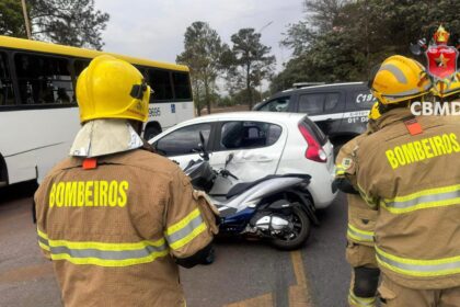 Acidente entre carro e moto deixa uma pessoa ferida no setor Policial Sul