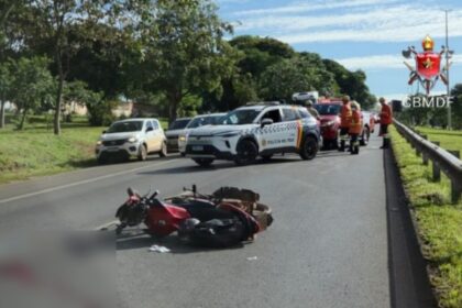 Acidente de trânsito: motociclista é socorrida com suspeitas de fratura após colisão com carro