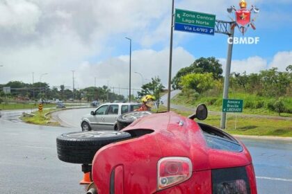 Balão do Torto: carro de passeio tomba e para o trânsito nesta quarta (21)