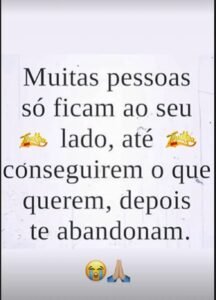 “Muitas pessoas só ficam ao seu lado até conseguirem o que querem, depois te abandonam”, escreveu Tirulipa no Instagram.