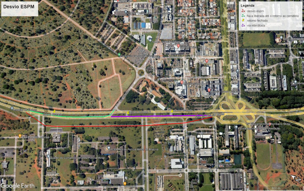 A SODF lembra que desvio de fluxo realizado na ESPM é permanente e está previsto no projeto de reformulação da pista. Além disso, os retornos da via serão fechados da altura da Agência Brasileira de Inteligência (Abin) até o viaduto da W3 Sul, exceto o cruzamento do cemitério com o Setor Hospitalar Sul.