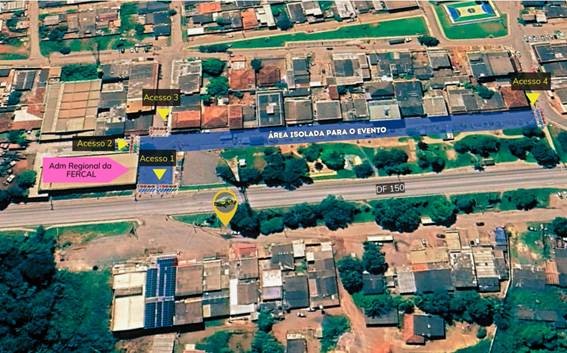 Veja, na marcação, a área que sofrerá intervenções no trânsito durante as festividades na Fercal | Foto: Divulgação/Detran-DF