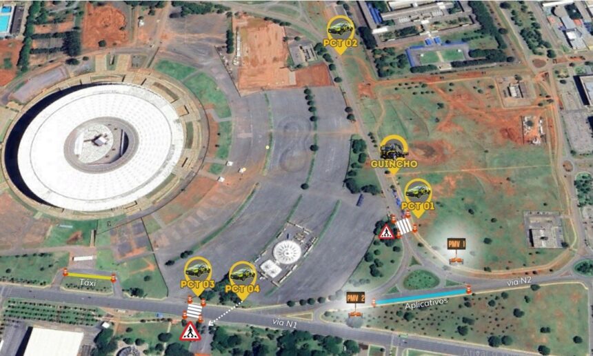 Na via N1, altura do Planetário, e na via contorno do Estádio Nacional de Brasília (ENB), haverá sinalização viária para a travessia de pedestres e para impedir estacionamento irregular. Também serão utilizados painéis eletrônicos de mensagens para orientar os condutores.