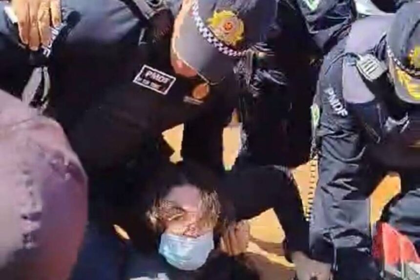 Em vídeo divulgado nas redes sociais, manifestantes argumentaram que o protesto era pacífico até a ação de abordagem dos policiais, que teriam ainda lançado gás contra os presentes.