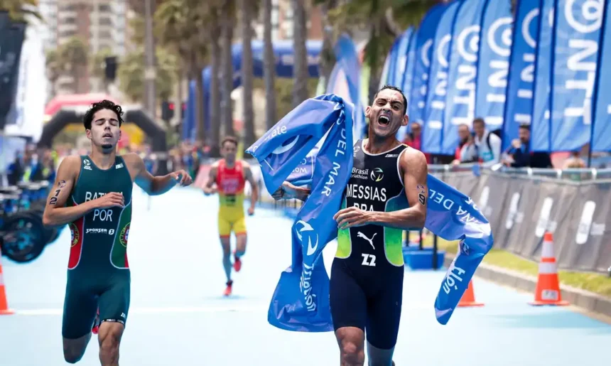 O triatlo brasileiro subiu ao topo do pódio da etapa da Copa do Mundo de Viña del Mar (Chile) no domingo (2) com o atleta Manoel Messias, de 28 anos. Em uma final emocionante, o cearense ocupava a terceira posição a um minuto do final da corrida – último terço da prova – quando disparou para a vitória. Messias cruzou a linha de chegada em 49min38s, apenas um segundo a menos que o português João Nuno Batista (medalha de prata) e cinco do espanhol David Cantero (bronze).