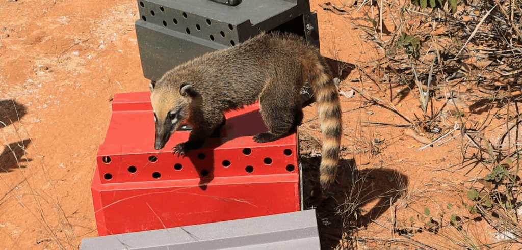 Quanto aos quatis, que eram quatro irmãos, um deles morreu durante o resgate. Eles foram encontrados sozinhos sem a mãe, em 2024, após os incêndios florestais. Depois de um ano de trabalho conjunto entre o Cetas e o Hfaus, com atividades de enriquecimento ambiental, voltadas ao desenvolvimento de comportamentos naturais, os animais também foram considerados aptos à reintegração.