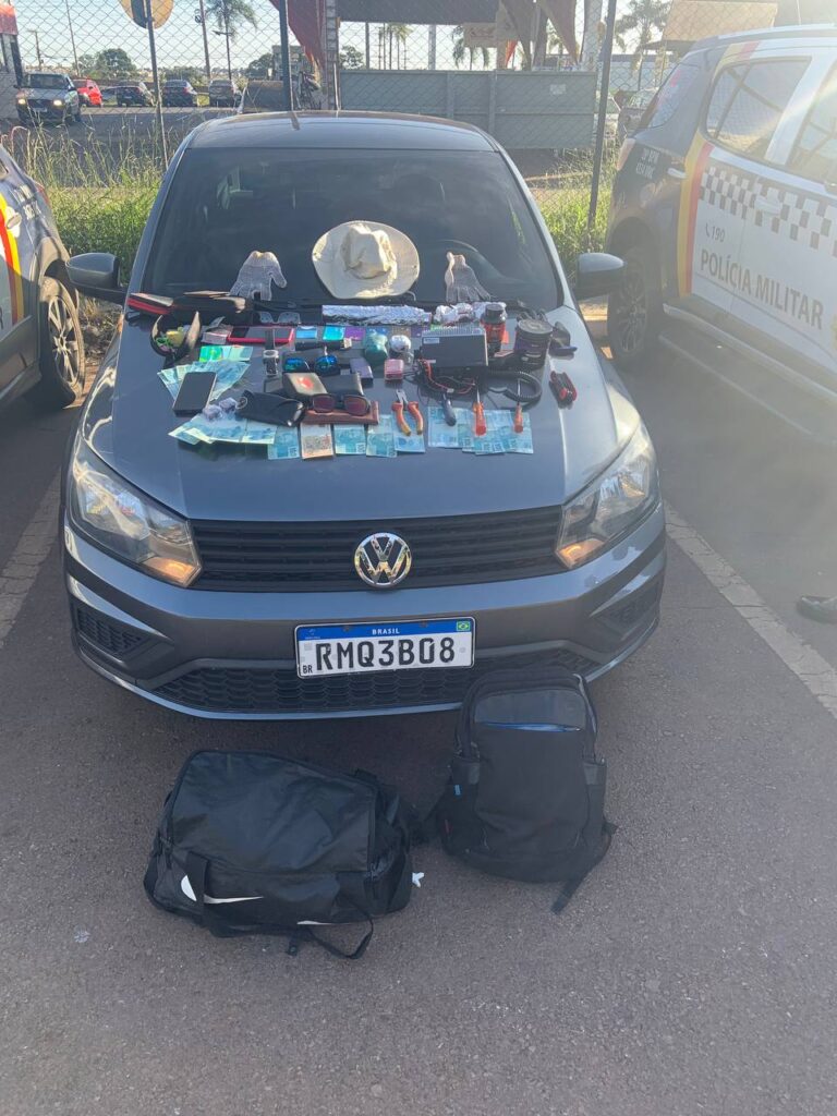 No veículo dos envolvidos, as equipes da Polícia Militar do Distrito Federal (PMDF) encontraram dinheiro em espécie, cartões, celulares, mochilas e ferramentas para o arrombamento dos carros. Confira a seguir: