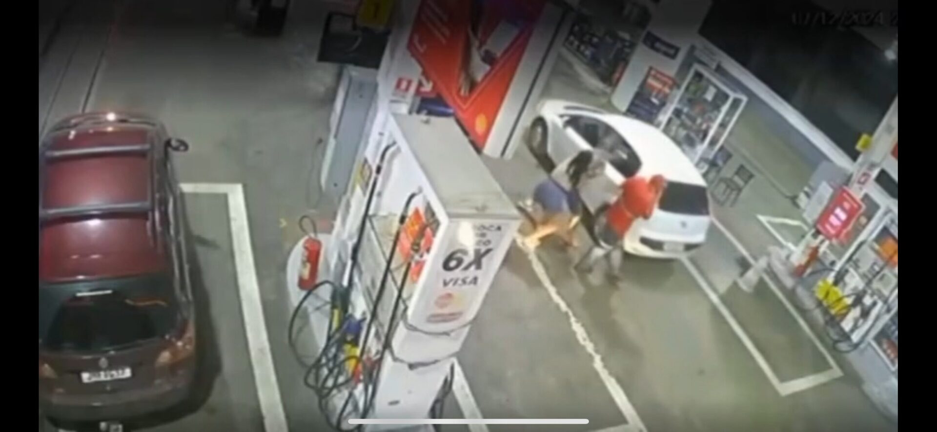 Durante a ocorrência, a esposa do suspeito aparece para tentar apaziguar a situação. Segundo relatos do frentista à Polícia Civil do Distrito Federal (PCDF), o indivíduo teria xingado e dado socos nele. O suspeito, que não teve sua identidade divulgada, deixou o carro no local onde estava sua família e fugiu a pé.