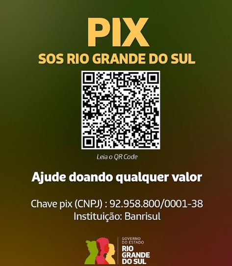 O Governo do Rio Grande do Sul também compartilhou nas suas redes sociais a chave PIX para doações.